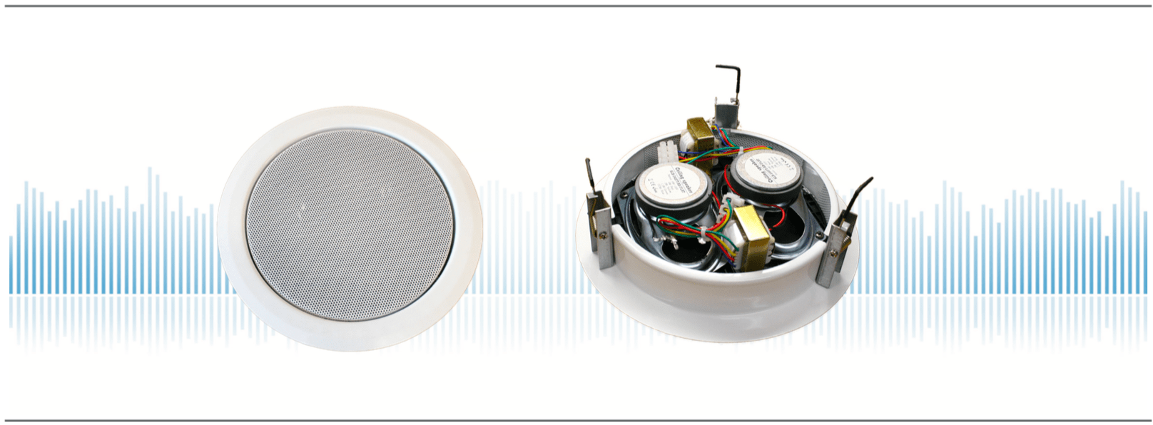 Deckeneinbau-Lautsprecher in Metall mit 2x 6 Watt Leistung und AB – Technik