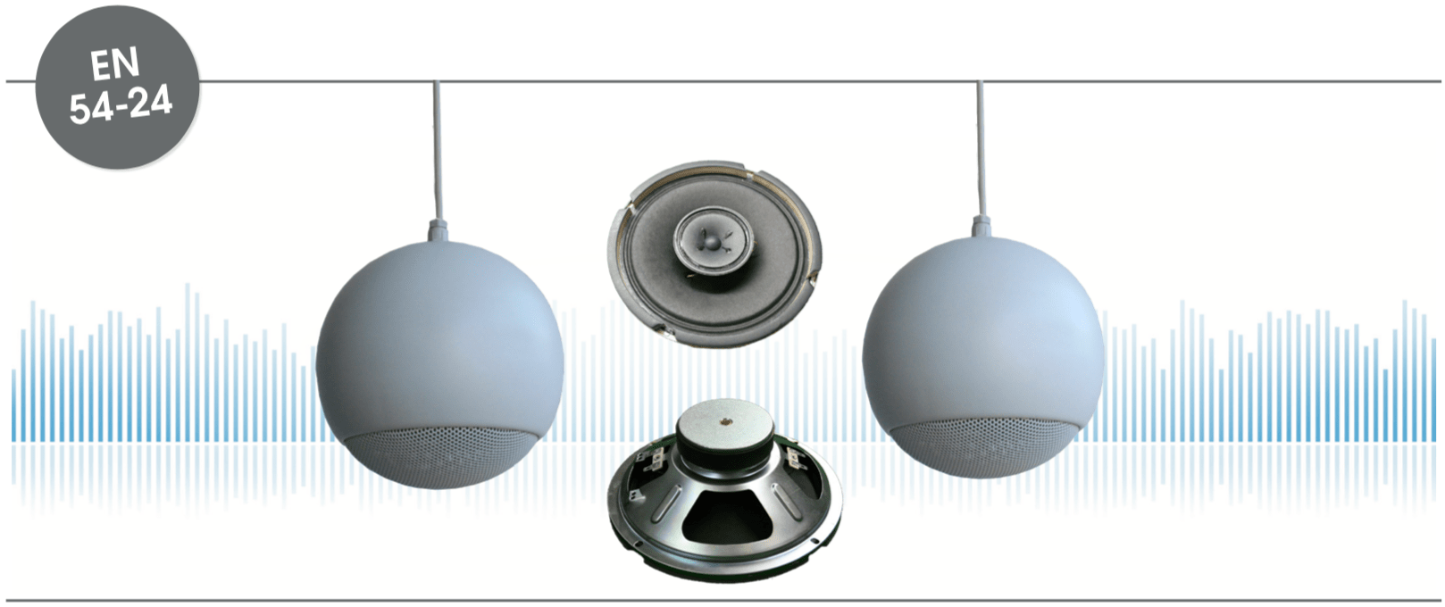 EN 54-24 Sphere-Speaker in Metal with 2x 30 Watt Power and AB-Dual-Cone-Technique