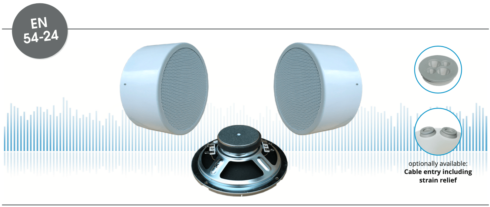 Description Description EN 54-24 On-Wall / Ceiling-Speaker in Metal with 2x 6 Watt Power and AB-Dual-Cone-Technique Power-Consumption: 2x 100V-6-3-1,5W Dimension: 180 (ø) x 70 mm (depth) Material: Metal Color: RAL 9010 / opt. RAL Classic