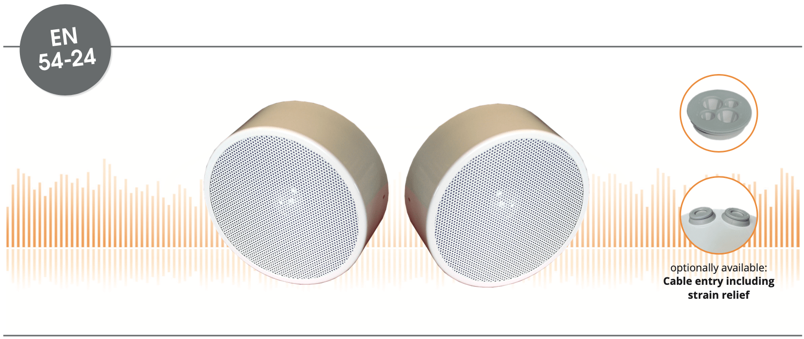 Description Description EN 54-24 Wall / On-Ceiling – Speaker in Metal with 6 Watt Power Power-Consumption: 100V-6-3-1,5W Dimension: 180 (ø) x 70 mm (depth) Material: Metal Color: RAL 9010 / opt. RAL Classic