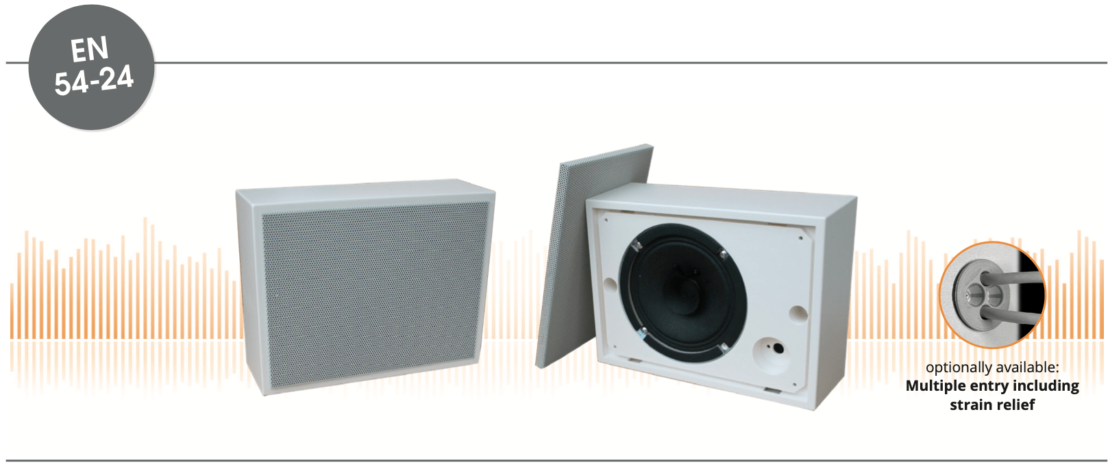 Description Description EN 54-24 Wall / On-Ceiling – Speaker in ABS with 6 Watt Power Power-Consumption: 100V-6-3-1,5W Dimension: 230 x 170 x 80 mm Material: ABS / Metal-Grill Color: white