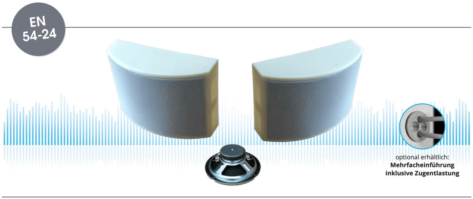 Beschreibung Beschreibung EN 54-24 Wand / Deckenaufbau-Lautsprecher in ABS mit 2x 10 Watt Leistung und AB-Dual-Cone-Technik Leistungsaufnahme : 2x 100V-10-6-3W Maße: 230 x 170 x 80mm Material: ABS / 5VB Farbe: weiß