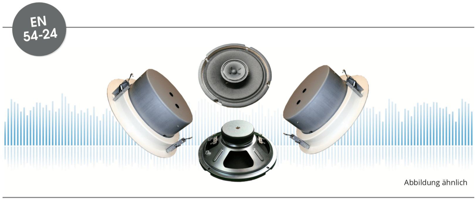 EN 54-24 Deckeneinbau-Lautsprecher in Metall mit 2x 30 Watt Leistung und AB-Dual-Cone-Technik