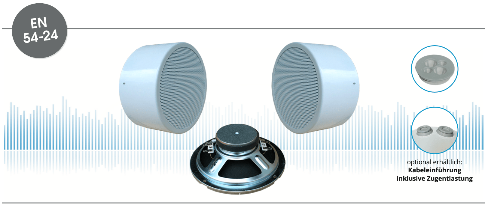 Beschreibung Beschreibung EN 54-24 Wand / Deckenaufbau-Lautsprecher in Metall mit 2x 6 Watt Leistung und AB-Dual-Cone-Technik Leistungsaufnahme : 2x 100V-6-3-1,5W Maße: 180mm (ø) x 70mm (Tiefe) Material: Metall Farbe: RAL 9010 / opt. RAL Classic