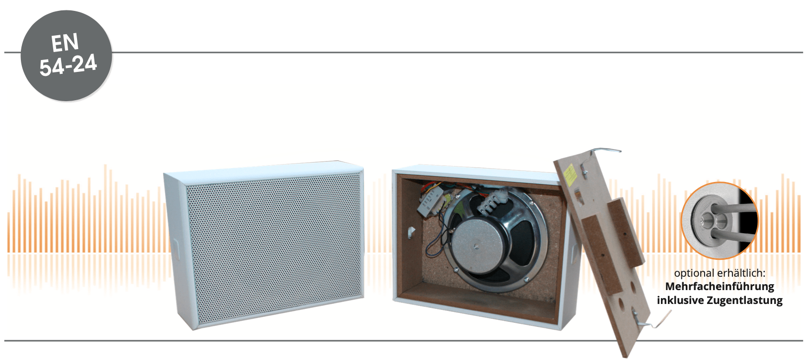 Beschreibung Beschreibung EN 54-24 Wand / Deckenaufbau-Lautsprecher in MDF mit 6 Watt Leistung Leistungsaufnahme : 100V-6-3-1,5W Maße: 255 x 195 x 85mm Material: MDF / Metall-Gitter Farbe: weiß