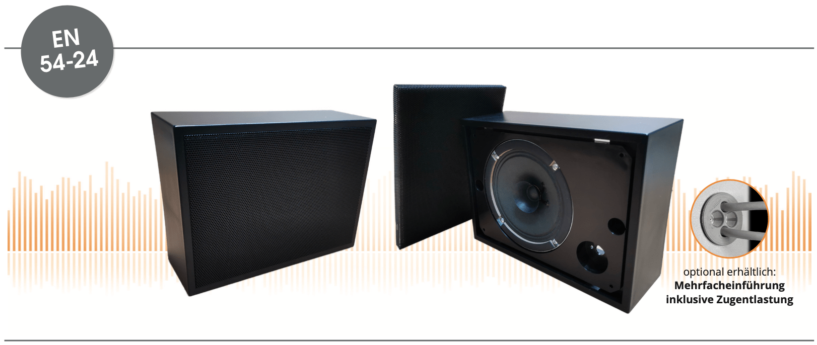Beschreibung Beschreibung EN 54-24 Wand / Deckenaufbau-Lautsprecher in ABS mit 6 Watt Leistung Leistungsaufnahme : 100V-6-3-1,5W Maße: 230 x 170 x 80mm Material: ABS Farbe: schwarz