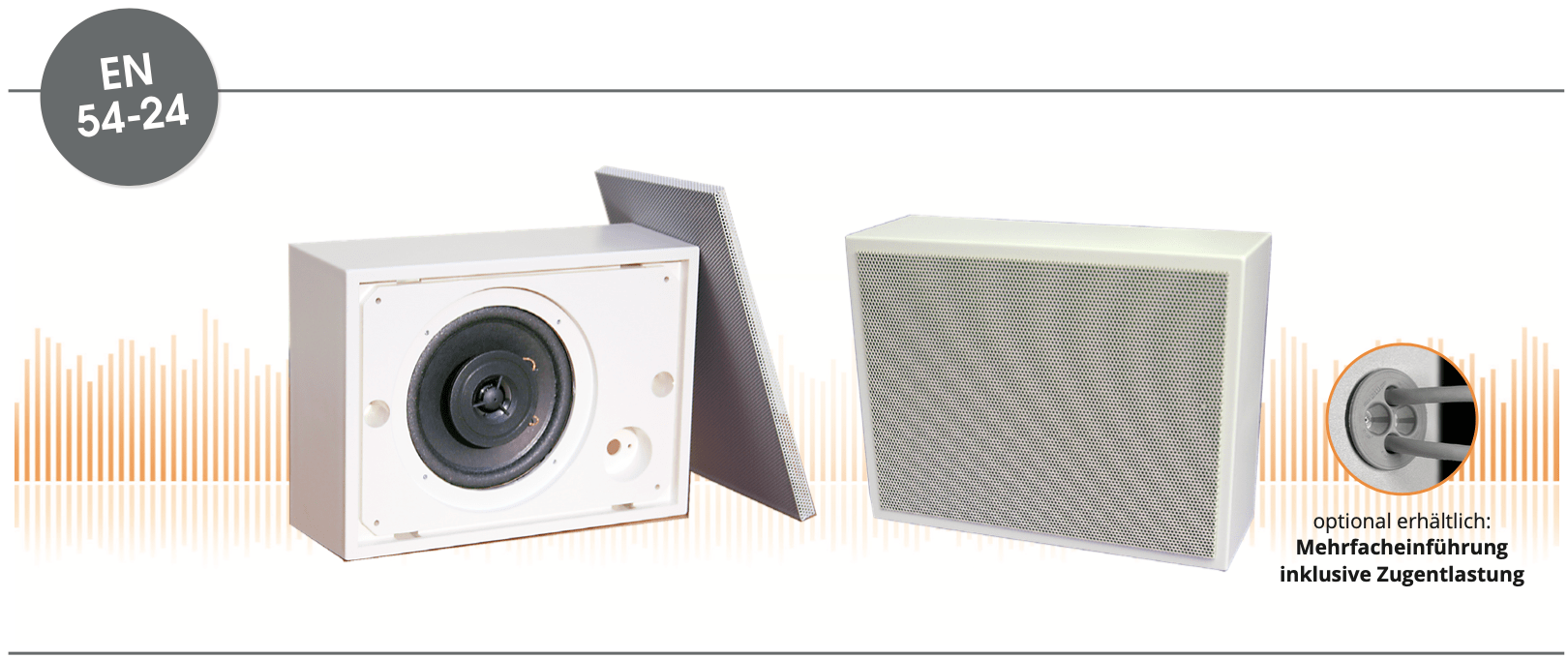 Beschreibung Beschreibung EN 54-24 Wand / Deckenaufbau-Lautsprecher in ABS mit 20 Watt Leistung und 2-Wege-Technik Leistungsaufnahme : 100V-20-10-6-3-1,5W / 2-Wege Maße: 230 x 170 x 80mm Material: ABS / 5VB Farbe: weiß
